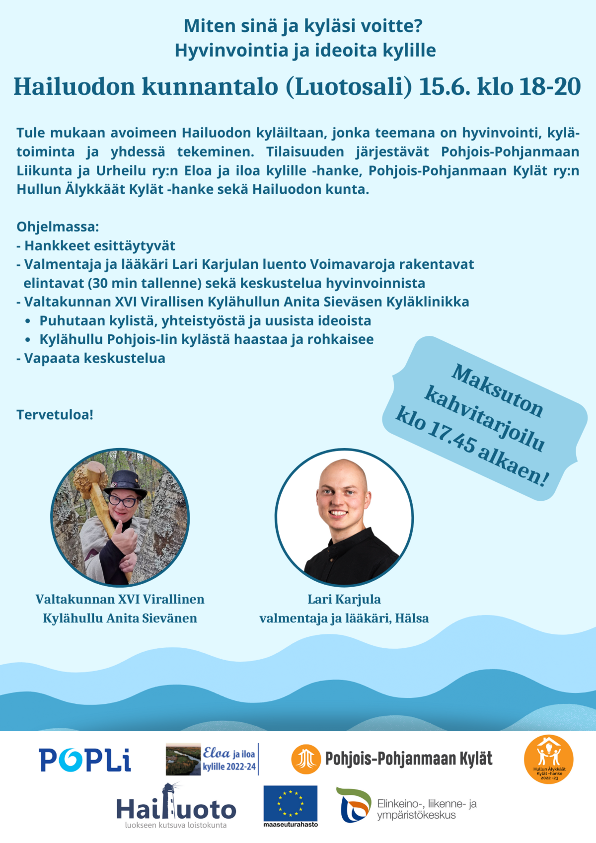 Hailuodon kyläilta. Järjestäjinä Eloa ja iloa kylille -hanke, Hullun Älykkäät Kylät -hanke ja Hailuodon kunta.