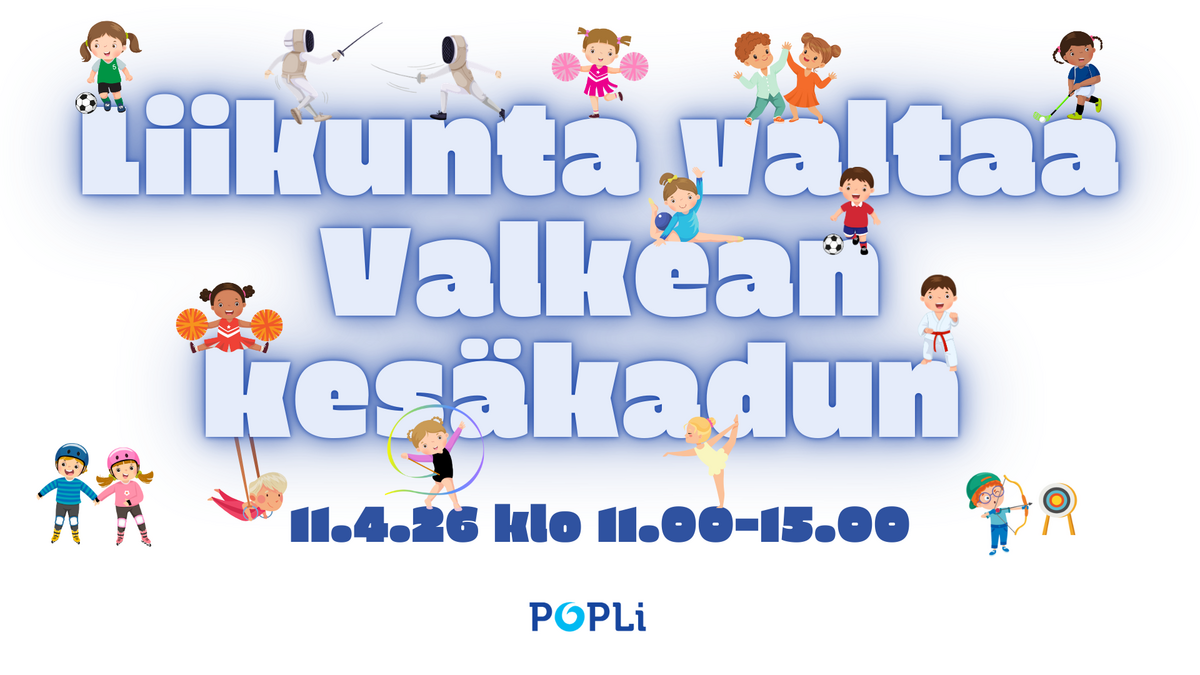 Pohjois-Pohjanmaan Liikunta ja Urheilu ry yhteistyössä alueen urheiluseurojen kanssa tuovat liikunnan iloa Kauppakeskus Valkean kesäkadulle 11.4.2026 klo 11.00–15.00.