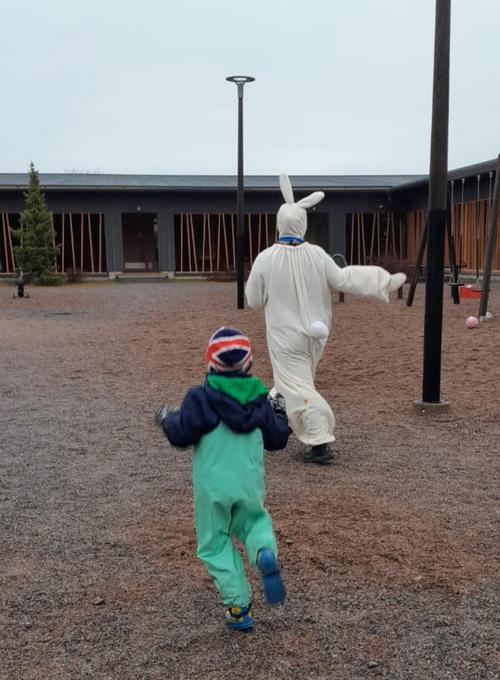 - Olemme aiempinakin vuosina osallistuneet Jekku-jänön seikkailuviikolle, ja tänä vuonna Jekku-jänö-hahmo oli ensimmäistä kertaa viihdyttämässä lapsia koko viikon ajan. Teimme ulos qr-koodeja, joiden alta löytyy näyteltyjä leikkejä ja toimintoja, joita tutkittiin yhdessä Jekku-jänön kanssa. Pihalla leikittiin tuttuja perinneleikkejä sekä harjoiteltiin erilaisia käsittelytaitoja esimerkiksi pallon kanssa. Perjantai huipentui jumppasaliin yhteiseen tanssipajaan, kertoo varhaiskasvatuksen opettaja Henna Viuhkonen.